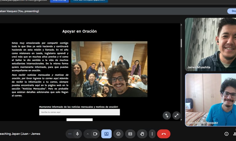 Por la oportunidad de compartir con japoneses y aprender sobre Japón y cómo compartir el evangelio allá.
